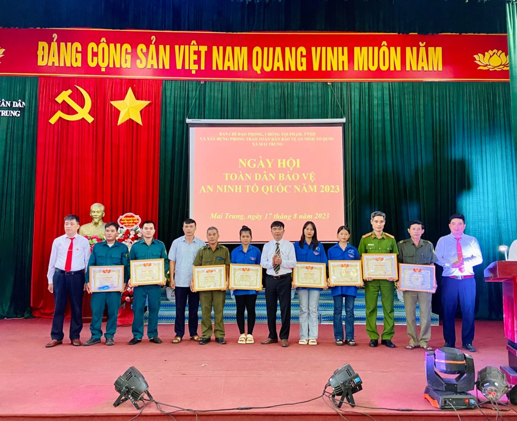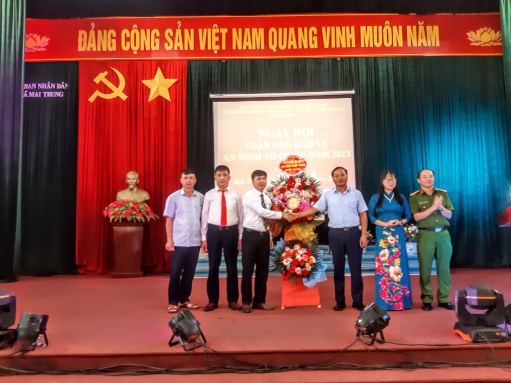 Về dự Ngày hội có đồng chí Phạm Văn Nghị, Uỷ viên Ban Thường vụ Huyện ủy, Phó Chủ tịch UBND huyện- Phó BCĐ phòng chống tội phạm, TNXH và xây dựng phong trào toàn dân bảo vệ ANTQ Huyện; đồng chí Nguyễn Thị Mạnh Hiền Huyện ủy viên, Chủ tịch Hội nông dân huyện; đồng chí thượng tá Cao Văn Sâm Phó trưởng Công an huyện; Các đồng chí Thành viên BCĐ huyện; Đội trưởng một số Đội nghiệp vụ Công an huyện. Các đồng chí Bí thư chi bộ, trưởng thôn, hiệu trưởng các trường, trạm trưởng trạm y tế xã; các mô hình tự quản về ANTT. Đại diện các tập thể, cá nhân được các cấp biểu dương khen thưởng.Trong những năm qua, phong trào toàn dân bảo vệ ANTQ trên địa bàn xã Mai Trung đã đạt nhiều thành tích đáng ghi nhận. Cấp ủy, chính quyền xã luôn xác định phong trào toàn dân bảo vệ ANTQ là công tác trọng tâm, nên thường xuyên quan tâm chỉ đạo, tổ chức thực hiện với nhiều nội dung và biện pháp phong phú. Công tác tuyên truyền, vận động nhân dân tham gia phong trào toàn dân bảo vệ ANTQ có nhiều chuyển biến tích cực.