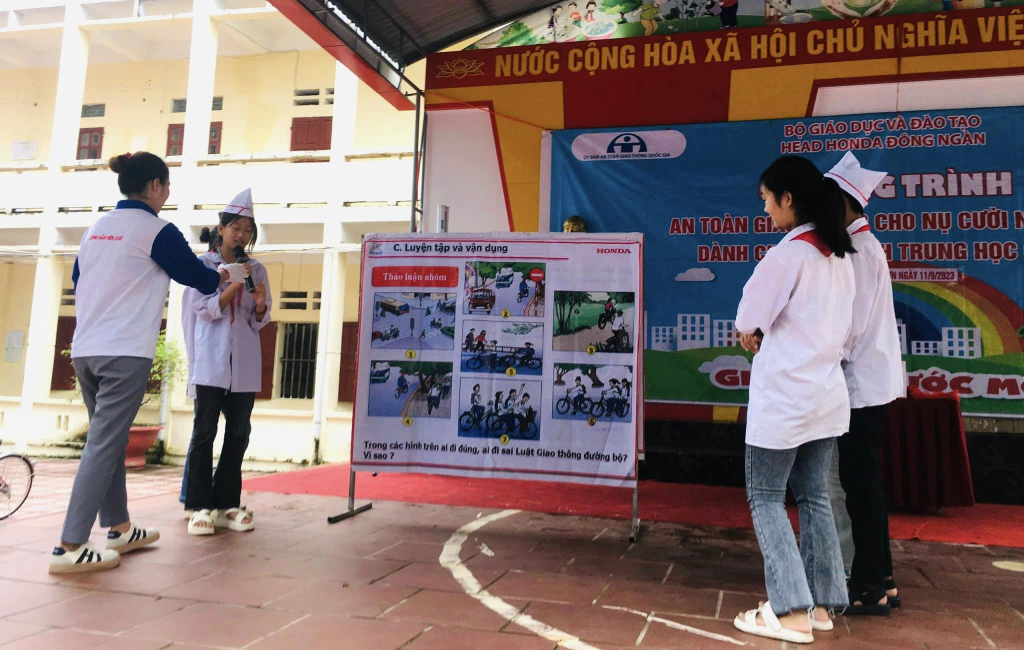 Sau khi cung cấp kiến thức, BTC đã tổ chức kiểm tra nhận thức của học sinh bằng nhiều cách. Chẳng hạn như phỏng vấn học sinh tại chỗ, chia các nhóm lên sân sấu để trả lời hoặc cho học sinh thực hành trên máy tập RT. Bằng tất cả các biện pháp đó, các KTV của HEAD Honda Đông Ngàn đã khắc sâu những kiến thức về ATGT cho học sinh, tạo nên môi trường hoạt động vui và hiệu quả. Cuối chương trình, BTC đã trao giải cho những học sinh tiêu biểu của trường qua các phần thi.