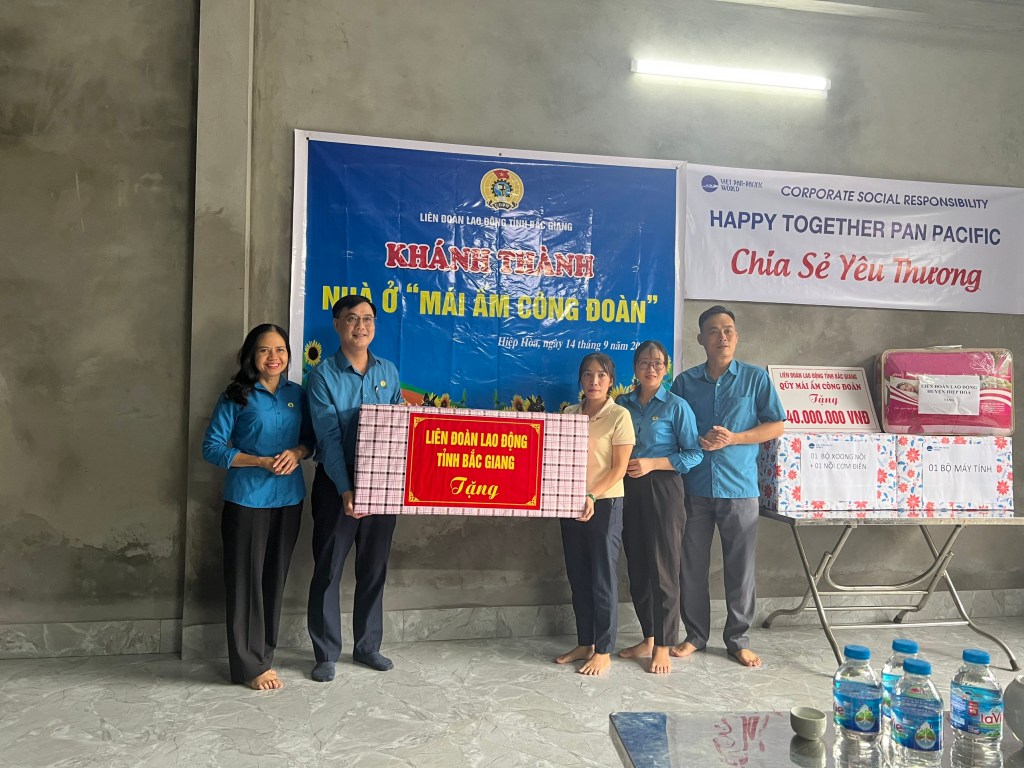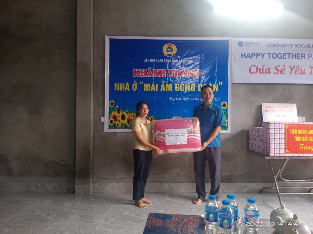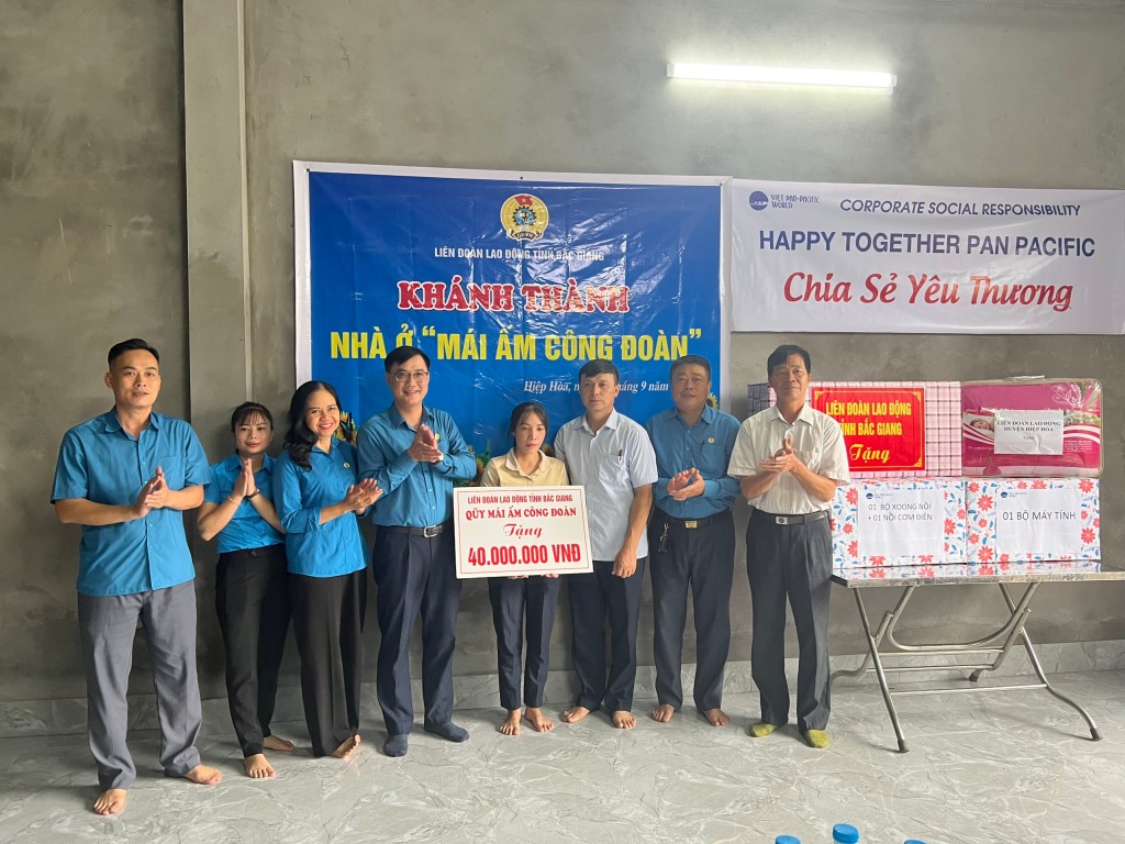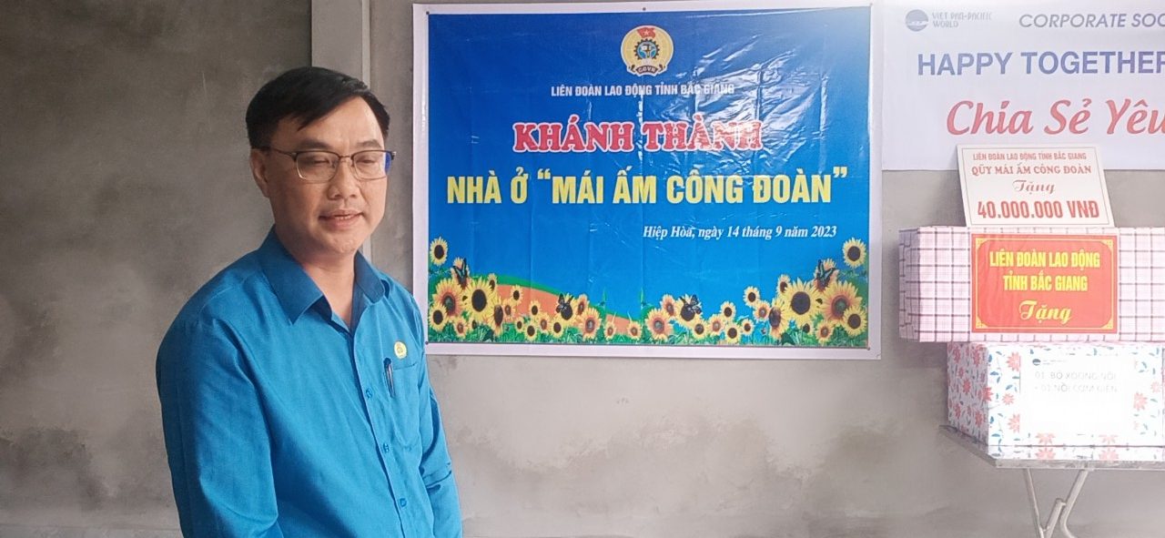 Ông Nguyễn Mạnh Hùng, Phó Chủ tịch LĐLĐ tỉnh Bắc Giang đã chúc mừng gia đình chị Dần có căn nhà mới để ổn định cuộc sống, yên tâm công tác, phấn đấu hoàn thành tốt hơn nữa nhiệm vụ được phân công của Công ty. Đồng thời đồng chí cho biết, chương trình hỗ trợ “Mái ấm Công đoàn” đã và đang trở thành một hoạt động xã hội có sức lan tỏa sâu rộng, thể hiện tinh thần đoàn kết, tương thân, tương ái “lá lành đùm lá rách” được đông đảo đoàn viên và người lao động đồng tình ủng hộ. Qua chương trình đã góp phần tạo dựng niềm tin, hiện thực hóa những ước mơ an cư, lạc nghiệp của đoàn viên, người lao động có hoàn cảnh khó khăn.