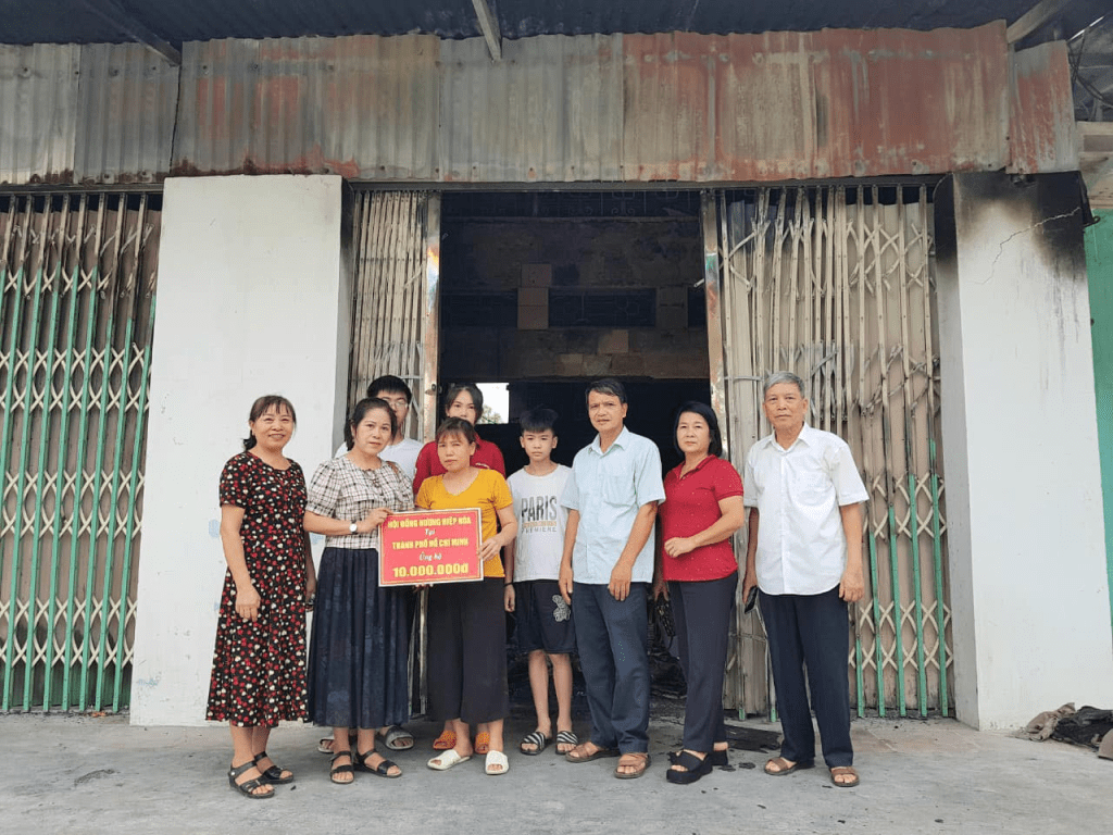 Cụ thể, đoàn đã về thăm hỏi và chia sẻ những khó khăn mất mát đối với gia đình bà Ngọ Thị Hiền ở thôn Khoát xã Đông Lỗ. Rạng sáng ngày 4/9 vừa qua, do sự cố chập điện, hoả hoạn đã thiêu cháy toàn bộ gia sản của gia đình. Bà và 3 con may mắn thoát nạn trong tình cảnh trắng tay. Cả ba cháu đều đang đi học ( trong đó có 2 cháu học đại học), vậy nên cuộc sống của cả gia đình bà đã gặp vô vàn gian khó. Trước hoàn cảnh đó, CLB tổ chức vận động, quyên góp để giúp đỡ gia đình bà vượt qua những khó khăn trước mắt. Sau hơn 1 tuần phát động, các thành viên trong CLB và các tổ chức, các nhà hảo tâm đã về trao cho gia đình bà Ngọ Thị Hiền số tiền là 31.000 000 đ và 40 kg gạo. Trong đó, riêng Hội đồng hương Hiệp Hoà tại TP Hồ Chí Minh đã ủng hộ 10 triệu đồng.