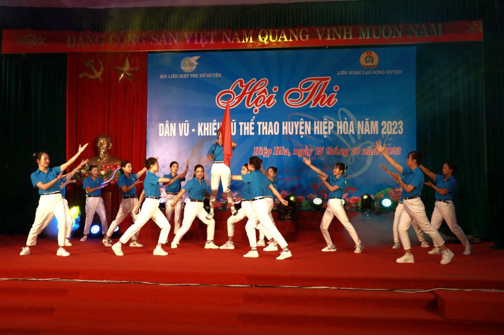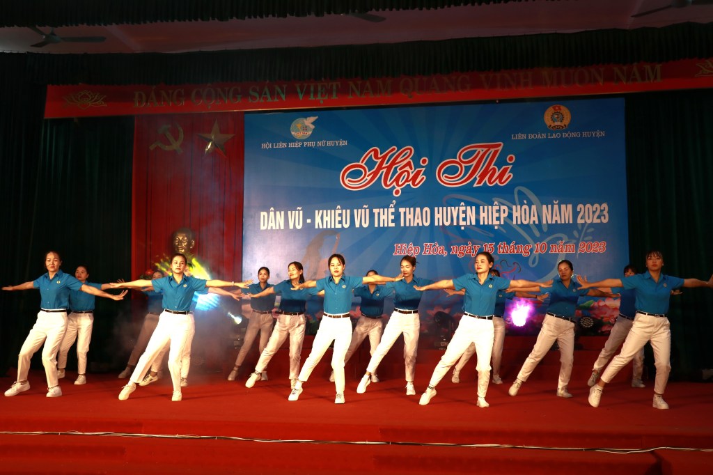 Ngày 15/10, Hội LHPN huyện Hiệp Hòa phối hợp với Liên đoàn Lao động huyện tổ chức Hội thi “Dân vũ, khiêu vũ thể thao” năm 2023 nhằm thiết thực chào mừng 26 năm ngày thành lập tỉnh Bắc Giang; 60 năm Bác Hồ về thăm và chỉ đạo Đại hội đại biểu Đảng bộ tỉnh Hà Bắc lần thứ I (17/10/1963-17/10/2023); chào mừng 93 năm ngày thành lập Hội LHPN Việt Nam (20/10/1930-20/10/2023); Ngày Phụ nữ Việt Nam (20/10/2023) và kỷ niệm 41 năm Ngày nhà giáo Việt Nam (20/11/1982-20/11/2023).