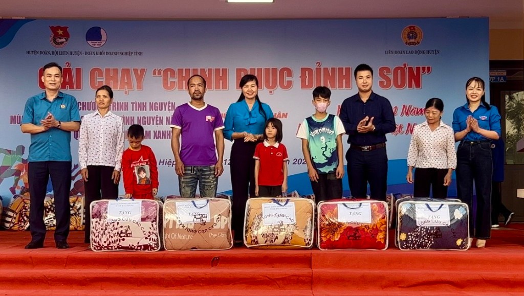 Nhân dịp này Ban tổ chức đã trao tặng 30 chăn ấm cho các hộ gia đình, các em học sinh có hoàn cảnh khó khăn trên địa bàn xã Hòa Sơn và toàn bộ số tiền vận động tại giải chạy để ủng hộ Quỹ “Vì một Việt Nam xanh” cho công đoàn cơ sở và Đoàn xã Hòa Sơn nhằm góp phần thực hiện thành công đề án trồng 1 tỷ cây xanh giai đoạn 2021-2025 của Thủ tướng Chính phủ phát động.