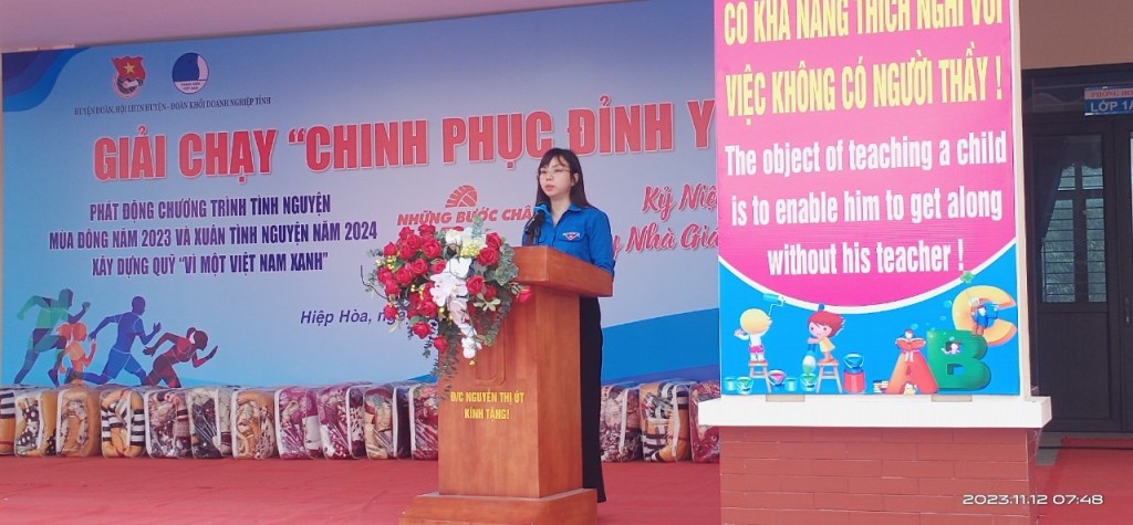 Phát biểu tại buổi lễ, Bí thư Huyện đoàn Ngô Thị An Trang kêu gọi lực lượngĐoàn viên Công đoàn, ĐVTN, hội viên Hội LHTN, người dân có đủ sức khỏe đăng ký tham gia giải chạy rèn luyện sức khỏe; đồng thời đẩy mạnh hoạt động tuyên truyền, vận động đoàn viên, thanh niên, hội viên và người dân tích cực tham gia các hoạt động chuyển đổi số góp phần phát triển kinh tế – xã hội và thúc đẩy quá trình chuyển đổi số trên địa bàn huyện.