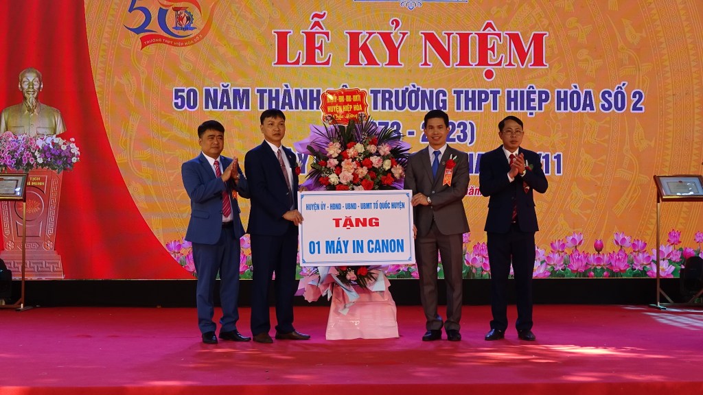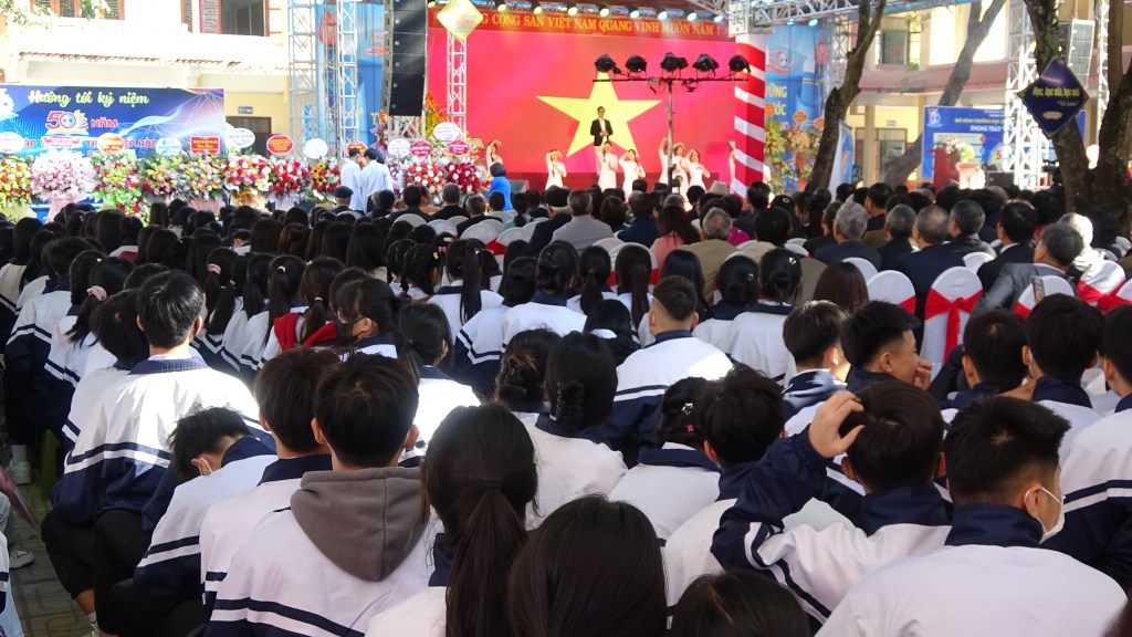 Tại buổi lễ Chủ tịch UBND huyện Hoàng Công Bộ chúc mừng những thành tích nhà trường đã đạt được trong 50 năm qua. Đây là ngôi trường lớn của tỉnh, có nhiều thành tích cao, ghi nhận sự thay đổi rõ nét, cơ sở vật chất khang trang hơn, đội ngũ giáo viên được trẻ hóa, trình độ được nâng cao.