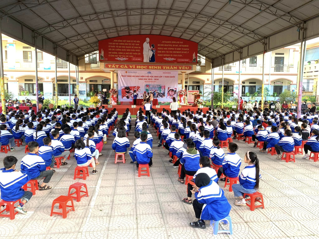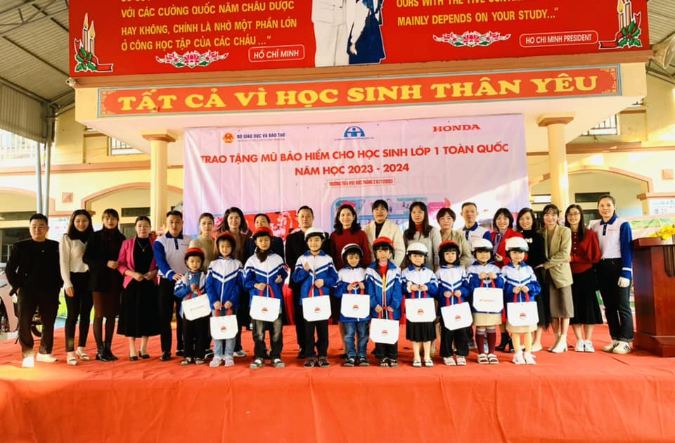 Cuối chương trình, Công ty Honda Đông Ngàn đã tổ chức trao tặng mũ bảo hiểm cho các em học sinh lớp 1 của trường.