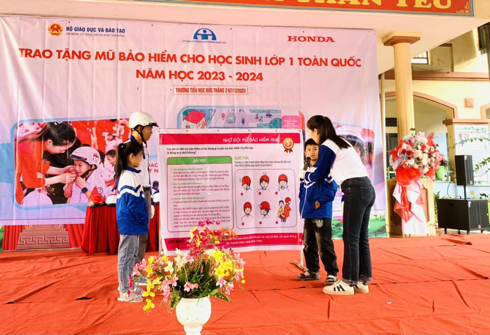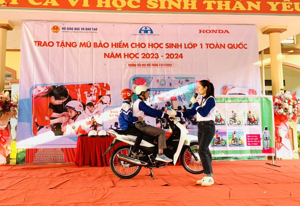 Sáng nay, 7/12 /2023, tại trường Tiểu học Đức Thắng 2 ( Hiệp Hoà), Công ty Honda Đông Ngàn đã tổ chức Chương trình tập huấn ATGT và trao tặng mũ bảo hiểm cho học sinh lớp 1. Tham dự chương trình này, về phía HEAD Honda Đông Ngàn có ông Nguyễn Văn Hiển- cửa hàng trưởng và các KTV, HDV . Về phía nhà trường có các thầy cô trong BGH , 550 em học sinh cùng toàn thể các thầy giáo, cô giáo trong trường và đại diện các quý PHHS của tất cả các khối lớp. Đây là hoạt động nằm trong chuỗi chương trình của Honda Việt Nam nhằm hướng tới giảm thiểu tai nạn giao thông- đặc biệt là đối với trẻ em trong các nhà trường ở Việt Nam.