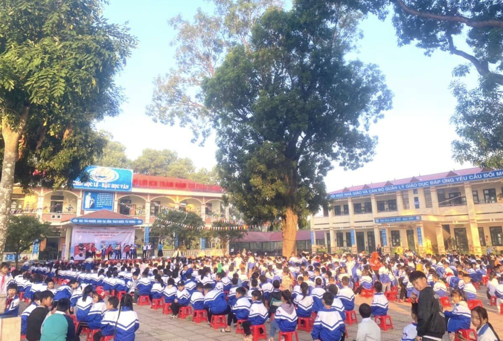 Phần cuối chương trình, Công ty Honda Đông Ngàn đã tổ chức trao tặng mũ bảo hiểm cho hơn 237 em học sinh lớp 1 của trường.