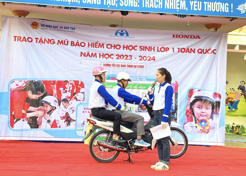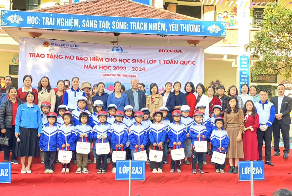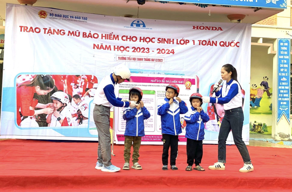 Thực hiện chương trình trao tặng 2 triệu mũ bảo hiểm đạt chuẩn cho học sinh lớp 1 toàn quốc của Honda Việt Nam phối hợp với Bộ giáo dục và đào tạo, sáng nay, 8/12 /2023, tại trường Tiểu học Danh Thắng huyện Hiệp Hoà tỉnh Bắc Giang, Công ty Honda Đông Ngàn đã tổ chức Chương trình trao tặng mũ bảo hiểm cho học sinh lớp 1 kết hợp tập huấn kiến thức về ATGT. Tham dự chương trình này, về phía HEAD Honda Đông Ngàn có ông Nguyễn Văn Hiển- cửa hàng trưởng và các KTV, HDV . Về phía nhà trường có các thầy cô trong BGH , các thầy giáo, cô giáo trong trường, toàn thể các em học sinh và đại diện các quý PHHS của tất cả các khối lớp. Đây là hoạt động nằm trong chuỗi chương trình của Honda Việt Nam nhằm hướng tới giảm thiểu tai nạn giao thông- đặc biệt là đối với trẻ em, hướng tới xây dựng một xã hội giao thông văn minh, an toàn.