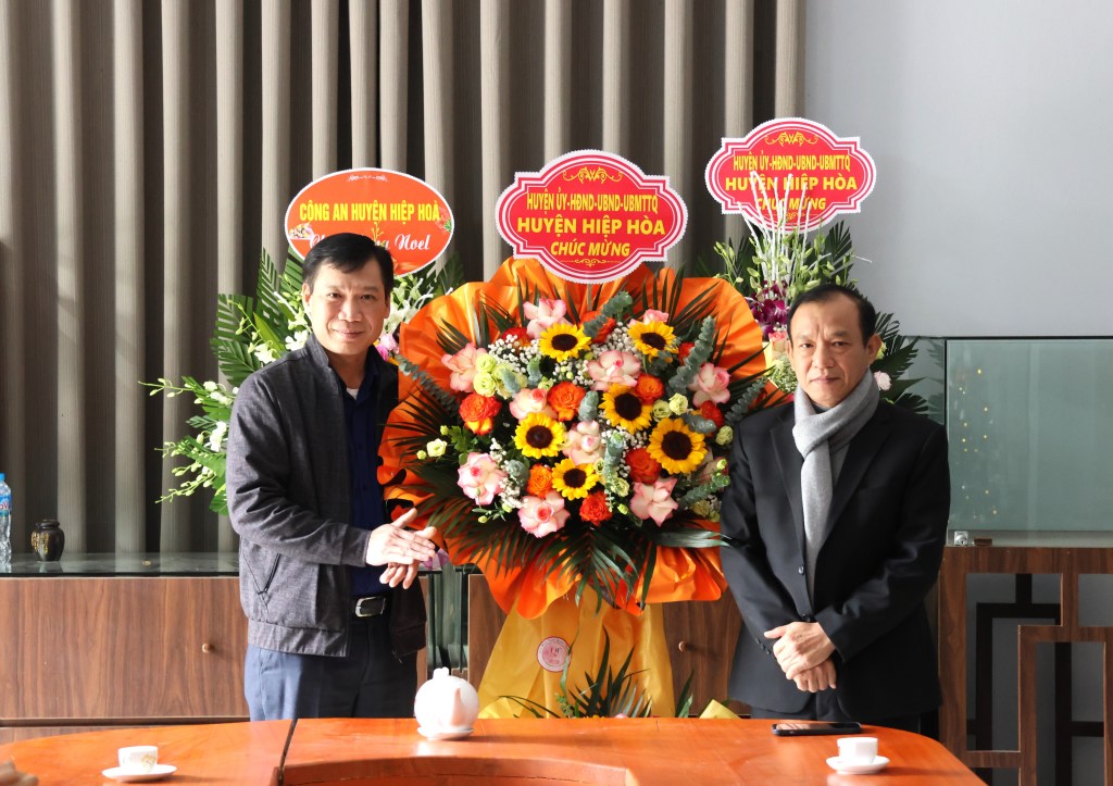 Tại đây, đồng chí Ngô Tiến Dũng, TUV, Bí thư Huyện ủy, Chủ tịch HĐND huyện cũng đã thông tin nhanh đến Linh mục, các Ban hành giáo và bà con giáo dân những kết quả kinh tế – xã hội nổi bật của huyện trong năm 2023, các chủ trương quyết sách và thông tin về một số dự án trọng điểm của huyện, đồng thời đồng chí ghi nhận những đóng góp to lớn của bà con giáo dân ở các giáo xứ, giáo họ trên địa bàn huyện nói chung và giáo dân của Giáo họ thôn Ngọc Liễn, Giáo xứ Ngọ Xá, xã Châu Minh nói riêng trong việc phát triển kinh tế, xây dựng Nông thôn mới, đảm bảo an ninh trật tự tại địa phương. Đồng chí Bí thư Huyện ủy mong muốn các vị Linh mục, Ban hành giáo phát huy uy tín, kinh nghiệm tiếp tục chăm lo cuộc sống đồng bào công giáo, hướng dẫn, động viên bà con giáo dân chấp hành tốt các chủ trương, chính sách pháp luật của Đảng, Nhà nước, vun đắp truyền thống đoàn kết, sống “Tốt đời, đẹp đạo”, “Kính chúa, yêu nước”, tích cực lao động, học tập, hăng hái tham gia các phong trào thi đua yêu nước ở địa phương, góp phần xây dựng quê hương Hiệp Hòa ngày càng giàu đẹp.
