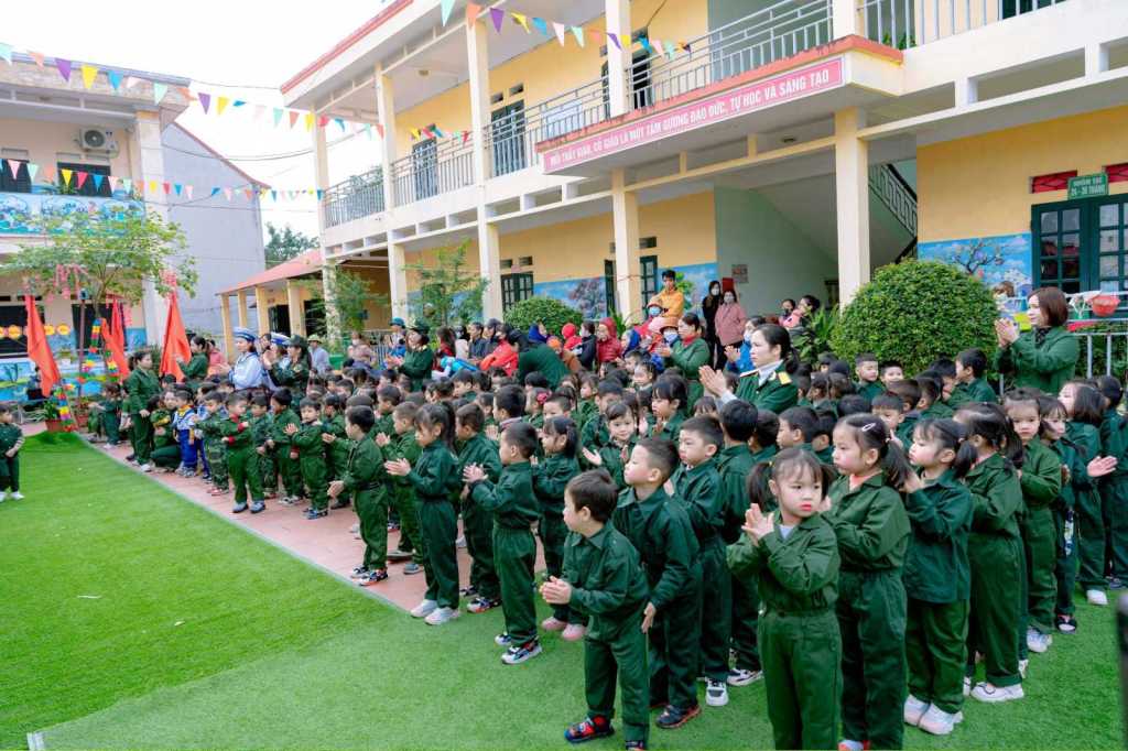 Nhân Kỷ niệm 79 năm ngày Quân đội nhân dân Việt Nam (22/12/1944 – 22/12/2023) và 34 năm ngày Quốc phòng toàn dân (22/12/1989 – 22/12/2023), sáng nay ngày 22/12/ 2023, Trường Mầm non Đồng Tân, huyện Hiệp Hòa tưng bừng tổ chức hoạt động trải nghiệm “Bé tập làm chiến sĩ”. Đây là hoạt động vô cùng ý nghĩa nhằm giáo dục cho trẻ em truyền thống Quân đội nhân dân Việt Nam anh hùng.