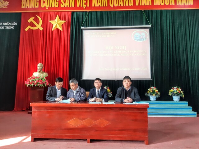 Sáng 28/12/2023, Đảng bộ xã Mai Trung tổ chức Hội nghị Tổng kết công tác xây dựng Đảng năm 2023, triển khai nhiệm vụ, giải pháp năm 2024 và ký cam kết quản lý đất đai giữa Bí thư chi bộ, trưởng thôn các thôn với Đảng ủy-UBND xã.