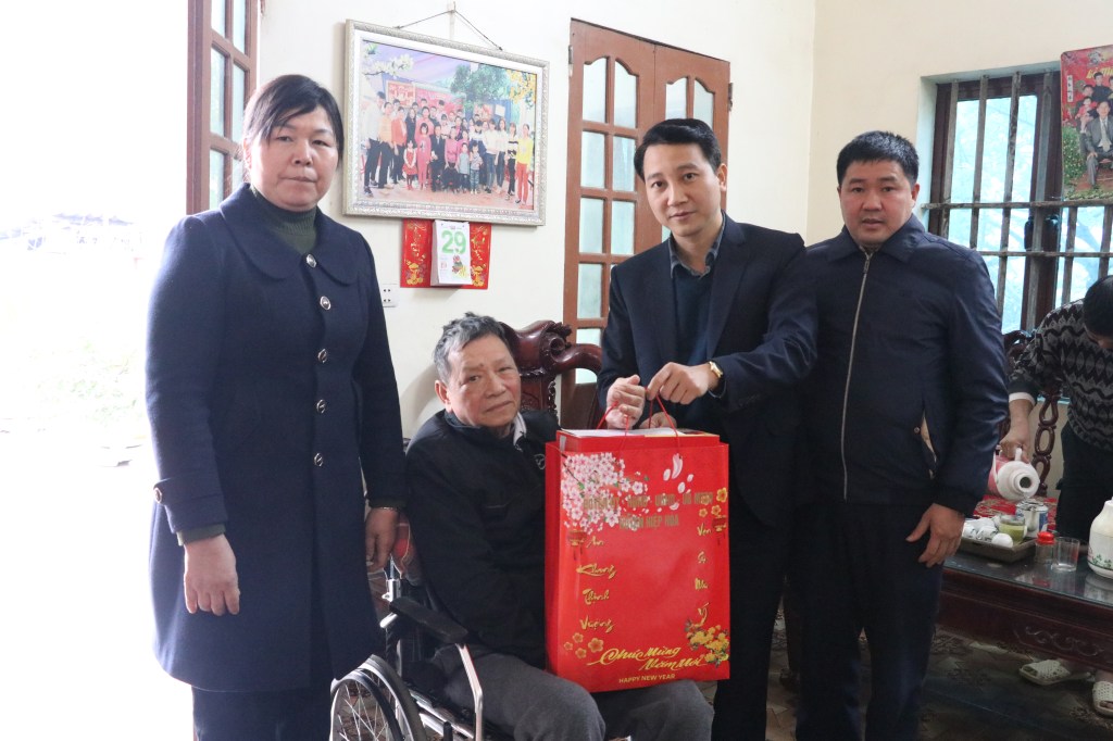 Tại các nới đến thăm, thay mặt HU- HĐND- UBND – UBMTTQ huyện, Đồng chí Hoàng Văn Tri, Ủy viên BTV HU, Chủ tịch HĐND huyện đã trao tặng quà tết cho đảng viên Lão thành trên 70 năm tuổi đảng, đó là ông Đặng Văn Nhường, thôn Hưng Đạo, xã Đông Lỗ và Đào Sỹ Viết, thôn xuân Thành, xã Châu Minh. Cùng buổi chiều Đoàn còn đến thăm tặng quà tết cho Thương binh Nguyễn Tiến Lộc, thôn Nội Hương xã Hương Lâm; Bệnh binh Đào Văn Mài thôn Hương Đạo xã Đông Lỗ và Thương binh Hoàng Xuân Tình, thôn Giữa, xã Lương Phong.