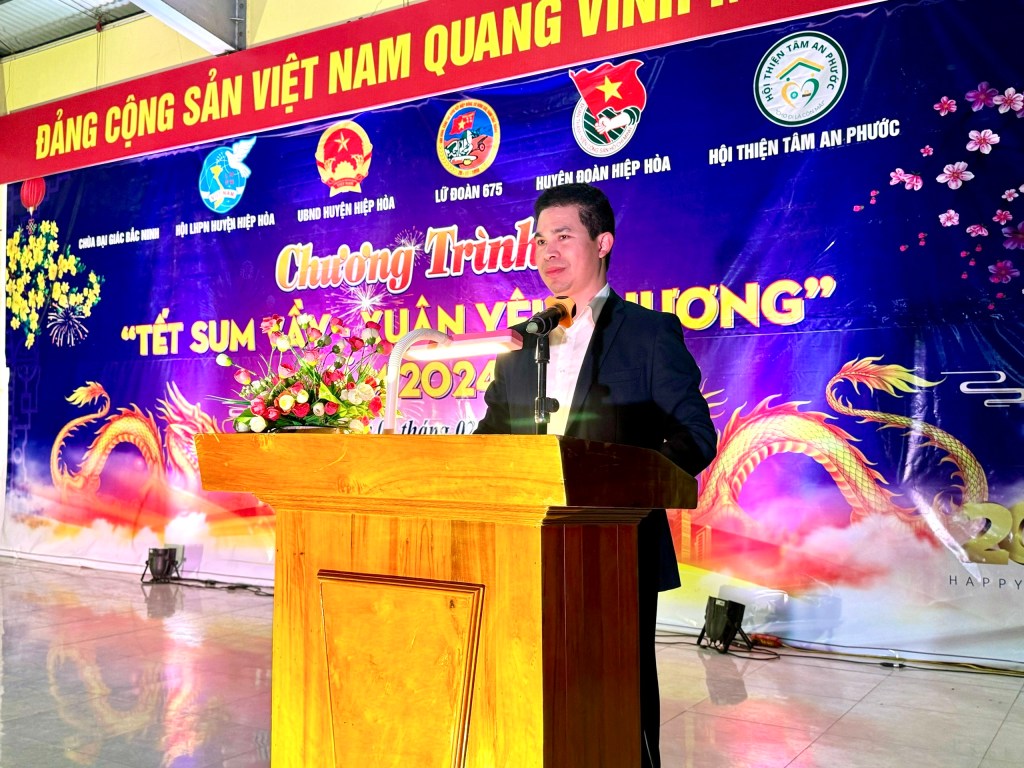Nhằm tiếp tục triển khai các hoạt động trong Chương trình Tình nguyện mùa Đông 2023 và Xuân Tình nguyện năm 2024; với tinh thần nhà nhà ai ai cũng có một cái tết sum vầy, đầm ấm. Ngày 02/02/2024, Huyện đoàn Hiệp Hoà phối hợp với UBND huyện, Hội LHPN huyện, Lữ đoàn pháo binh 675, Hội thiện tâm An Phước, Chùa Đại Giác (Bắc Ninh) tổ chức chương trình “Tết Sum Vầy, Xuân Yêu Thương” tại Lữ đoàn pháo binh 675.