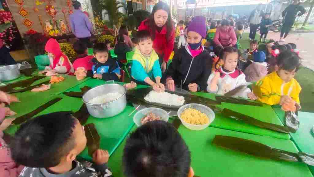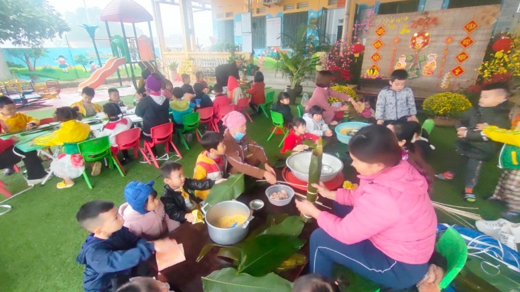 Thực hiện Kế hoạch số 01/KH-MNĐL1 ngày 25 tháng 01 năm 2024 về việc tổ chức hoạt động trải nghiệm “Bé vui đón tết” của Trường Mầm non Đông Lỗ số 1, Hiệp Hòa nhân dịp đón Tết Giáp Thìn 2024, nội dung gồm có 3 phần lớn: chương trình văn nghệ mừng Đảng, mừng xuân; thi gói bánh, làm tranh, cắm hoa, bày mâm ngũ quả và chơi các trò chơi dân gian.