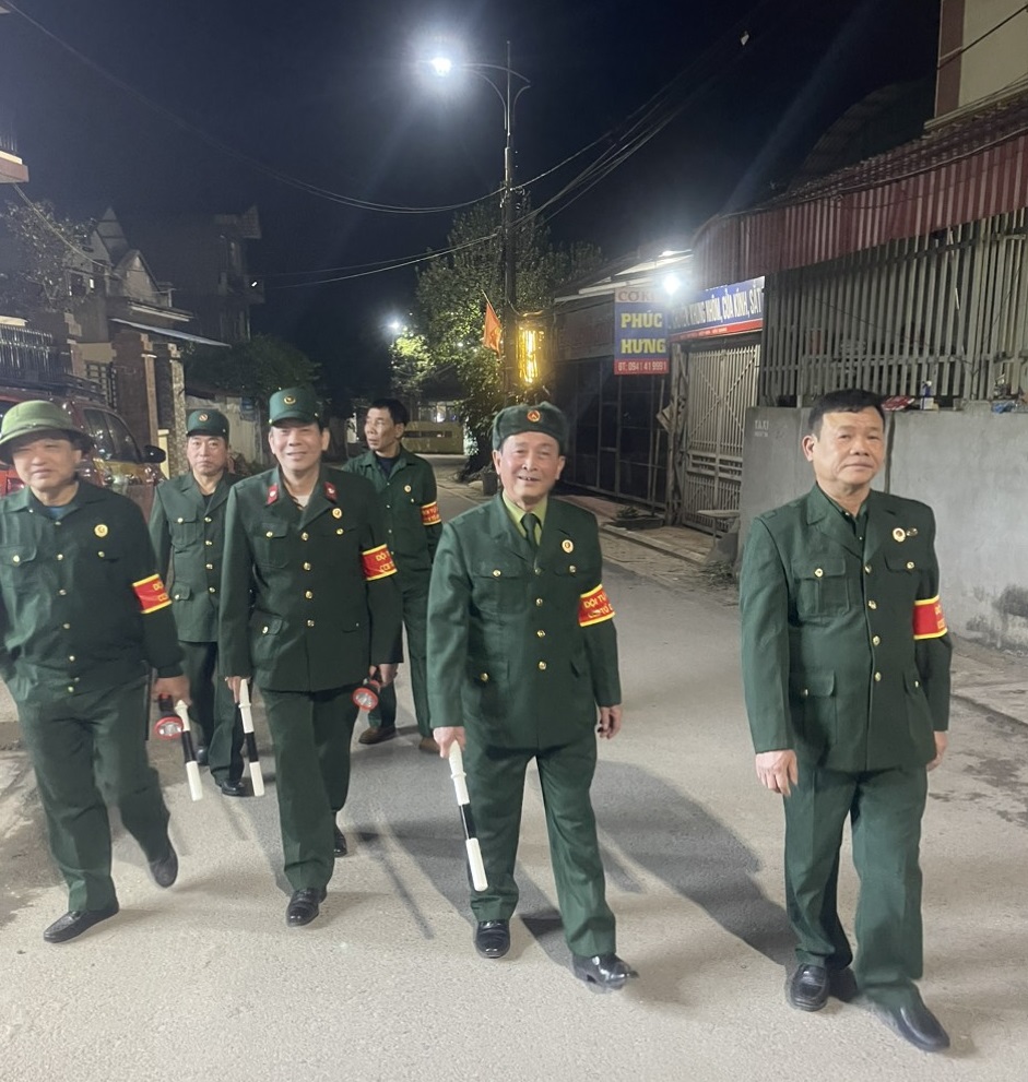 Tổ An ninh tự quản Chi hội Cựu chiến binh tổ dân phố số 2 thị trấn Thắng phối hợp tuần tra