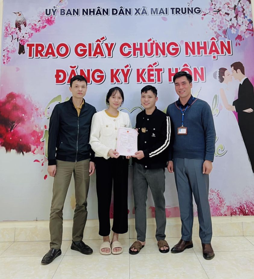 Lãnh đạo UBND xã Mai Trung tổ chức Lễ trao đăng ký kết hôn ngày làm việc đầu năm
