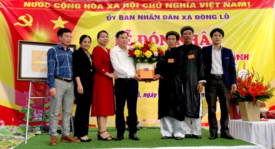 Đại diện Bảo tàng tỉnh Bắc Giang, Phòng Văn hóa Thông tin huyện trao Bằng Công nhận cho gia tộc họ Nguyễn