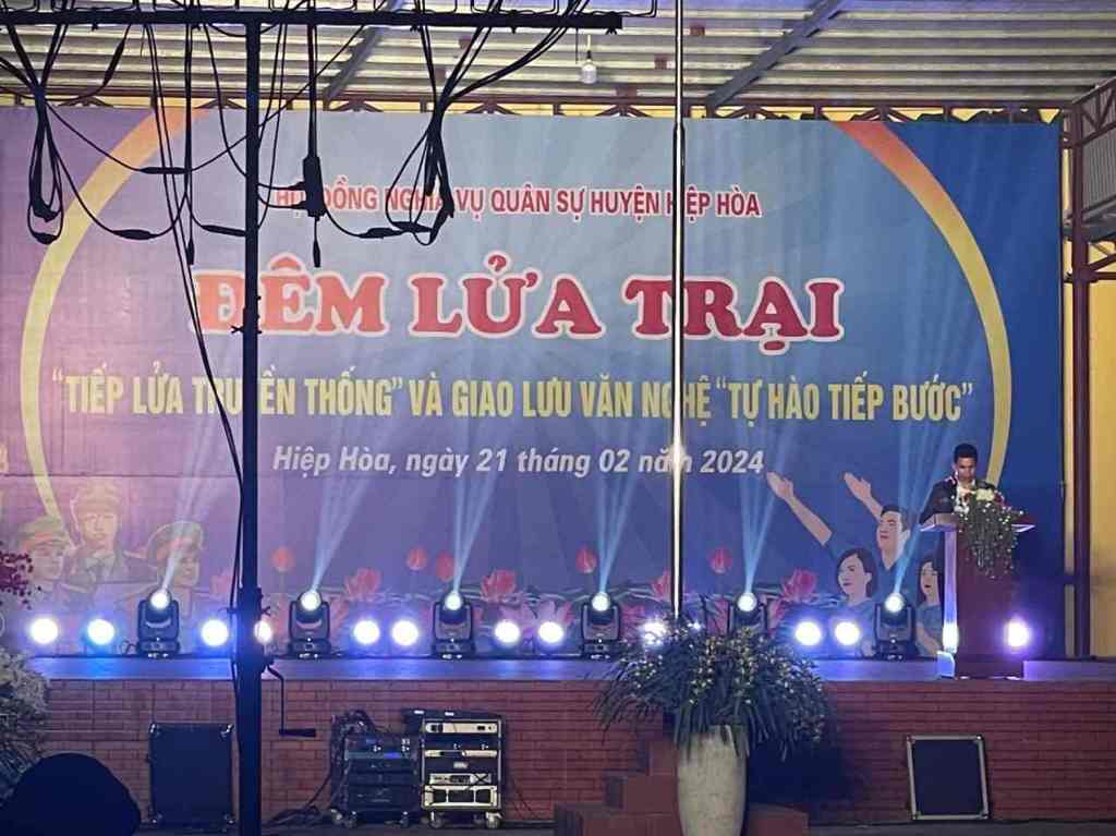 Hòa chung trong không khí tưng bừng, rộn rã của ngày hội giao nhận quân năm 2024; nhằm động viên, cổ vũ tân binh lên đường làm nhiệm vụ bảo vệ Tổ quốc. Tối 21/02, huyện Hiệp Hòa đã tổ chức chương trình giao lưu văn nghệ và đốt lửa truyền thống tiễn tân binh lên đường nhập ngũ năm 2024.