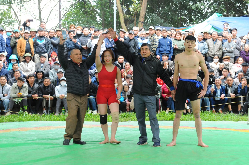 Đô vật nữ là Diêm Thị Hà, quê xã Hương Mai, thị xã Việt Yên đã thách đấu với một đô nam và đã thắng tuyệt đối tại sới vật.