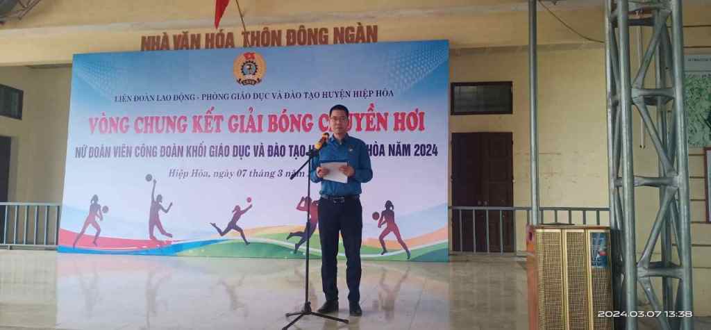 Chiều ngày 07/3, tại nhà văn hóa tổ dân phố Đông Ngàn thị trấn Thắng, Liên đoàn lao động huyện phối hợp với Phòng Giáo dục tổ chức thi đấu vòng chung kết Giải bóng chuyền hơi chào mừng kỷ niệm 114 năm ngày quốc tế phụ nữ mùng 8/3 . Đến dự có đồng chí Nguyễn Thị Thu Hương – Phó chủ tịch LĐLĐ tỉnh; đồng chí Bùi Huy Khánh, Phó Bí thư thường trực huyện ủy; đồng chí Ngô Quang Tuấn, Chủ tịch LĐLĐ huyện; đồng chí Phạm Văn Hà, trưởng Phòng Giáo dục và Đào tạo huyện.