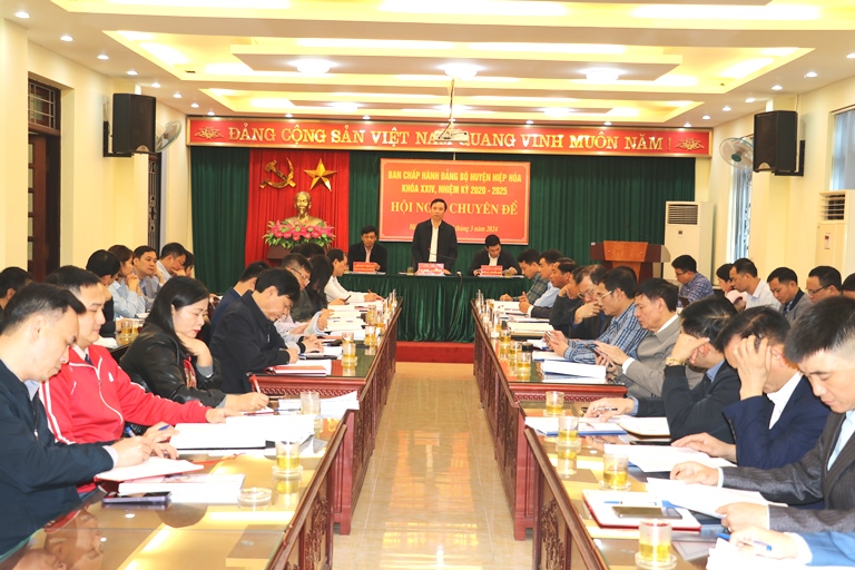 Sáng ngày 13/3/2024, Ban Thường vụ Huyện uỷ tổ chức Hội nghị Hội nghị Ban chấp hành Đảng bộ huyện (Hội nghị chuyên đề) để cho ý kiến vào dự thảo Đề án sắp xếp đơn vị hành chính cấp xã, giai đoạn 2023- 2025 trên địa bàn huyện Hiệp Hòa.
