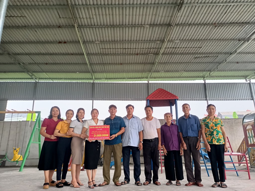 Trong học kỳ I năm học 2023-2024 vừa qua, không khí học tập, vui chơi của học sinh Nhà trường diễn ra sôi nổi và đầy hào hứng. Các con tích cực tham gia các hoạt động ở trường, các con luôn chăm ngoan, có nề nếp học tập tốt…. Đồng hành với các con là các bậc phụ huynh, các mệnh thường quân và nhân dân các thôn trong xã Đoan Bái đặc biệt là nhân dân thôn Tân Sơn đã luôn tin tưởng gửi gắm con em mình tới trường trong suốt thời gian qua, không chỉ vậy các bậc phụ huynh còn ủng hộ cô và trò nhà trường không chỉ về tinh thần mà còn có những vật chất như: Cán bộ, nhân dân thôn Tân Sơn- Đoan Bái ủng hộ nhà trường 31,000,000đ để bắn mái sân, đóng cánh cửa tủ bếp…. ( ảnh đại diện trang)