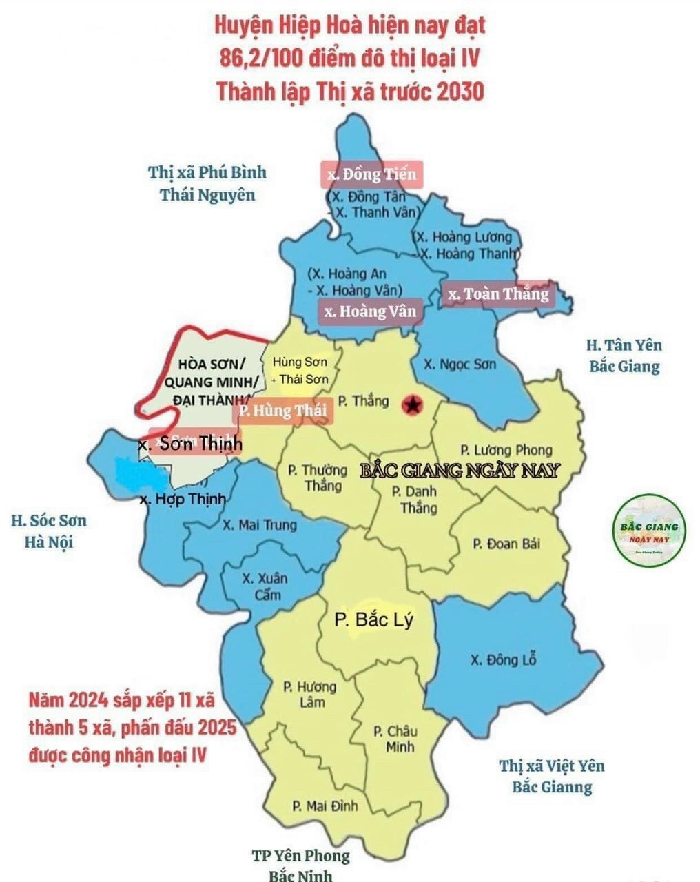 Theo tinh thần Nghị quyết số 35/2023/UBTVQH15 của Ủy ban Thường vụ Quốc hội về việc sắp xếp ĐVHC cấp huyện, cấp xã giai đoạn 2023 – 2030, Nghị quyết số 117/NQ-CP của Chính phủ, Kế hoạch số 45/KH-UBND ngày ngày 31/8/2023 của UBND tỉnh Bắc Giang, Kế hoạch số 54/KH-UBND ngày 15/02/2024 của UBND huyện về thực hiện sắp xếp đơn vị hành chính cấp xã giai đoạn 2023 – 2025, các xã, thị trấn thuộc diện phải sắp xếp để đáp ứng tiêu chí về diện tích và dân số.