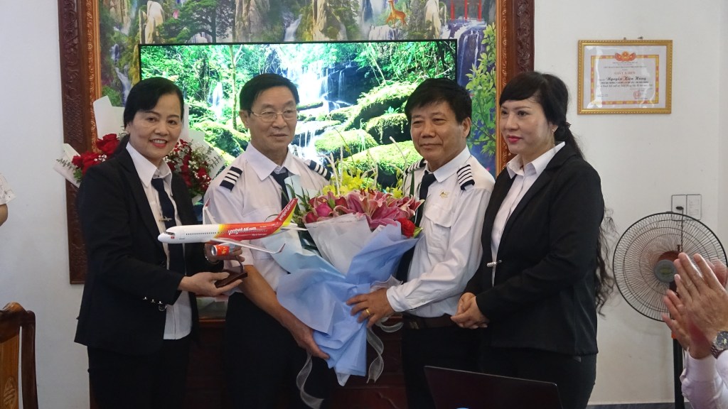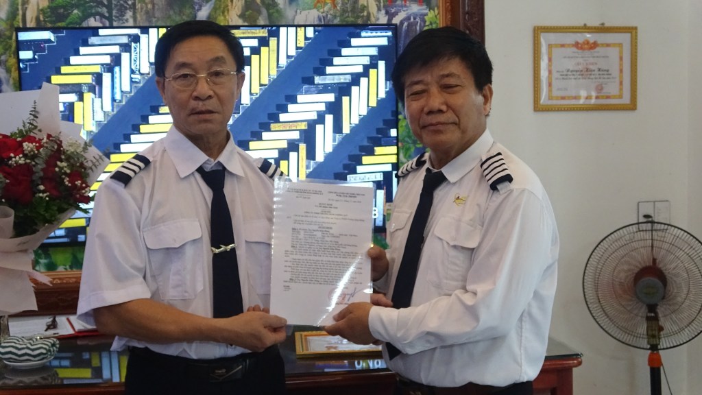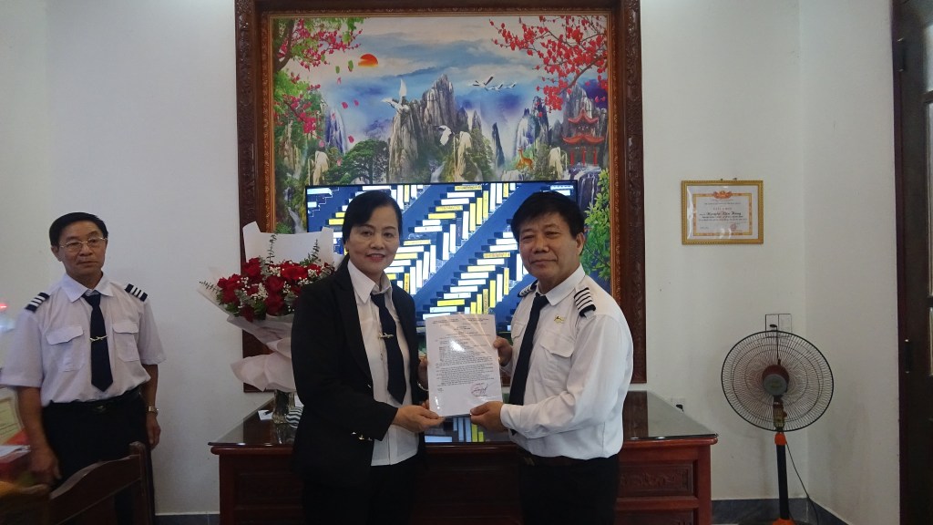 Tổng giám đốc công ty TNHH trường hàng không ACT ông Đặng Văn Miêng ( Ảnh phải) đã trang trọng trao Quyết định