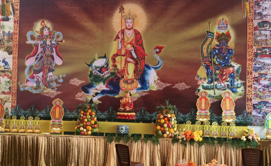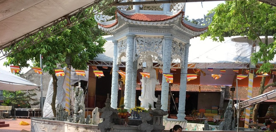 Tòa trên cùng đặt 3 pho tượng Tam thê”, A Di Đà, đến tượng Quan Âm thiên thủ thiên nhãn (nghìn đầu, nghìn mắt), 2 bên có tượng Văn Thù Bồ tát và Phổ hiền Bồ tát. tượng Thích Ca sơ sinh đứng trong tòa Cửu Long (9 rồng).