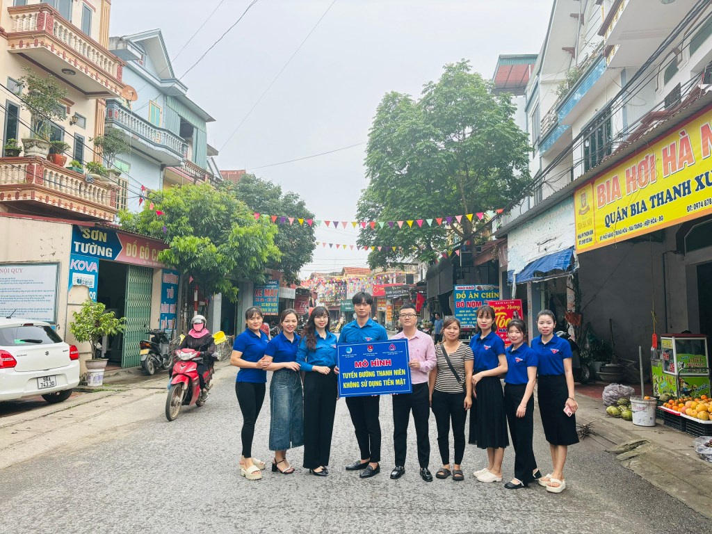 Đoàn xã Mai Trung cùng Ngân hàng chính sách xã hội huyện Hiệp Hòa phối hợp tổ chức ra mắt công trình thanh niên “Tuyến đường thanh niên – không sử dụng tiền mặt” tại tuyến đương chợ Trung Hòa xã Mai Trung.