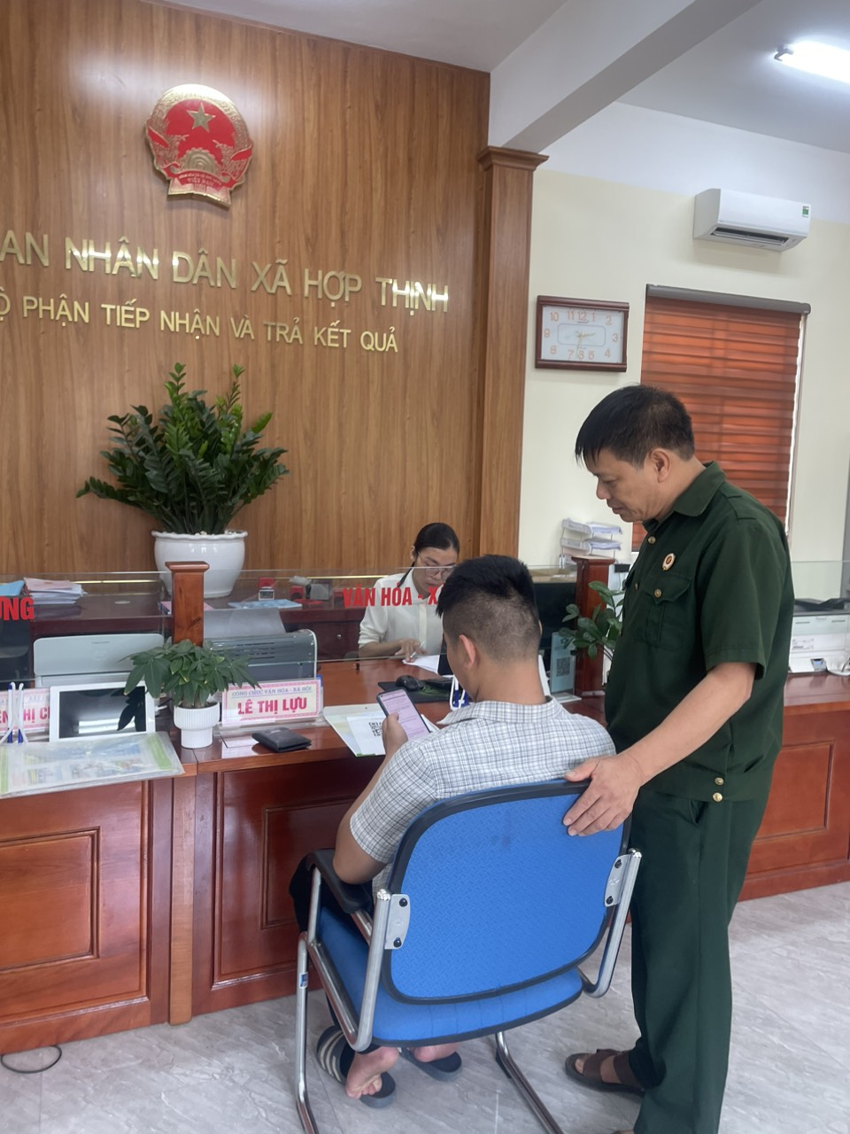 Thực hiện kế hoạch số 158-KH/BCĐ, ngày 05/06/2024, của Ban chỉ đạo xây dựng Chính quyền thân thiện huyện Hiệp Hòa về việc tổ chức Khảo sát lấy ý kiến của người dân đối với chủ tịch UBND xã.. UBND xã Hợp Thịnh phối hợp với Hội Cựu chiến binh xã tổ chức hỗ trợ hướng dẫn người dân thực hiện thủ tục hành chính, truy cập mã QR code trả lời khảo sát việc thực hiện QCDC tại xã.