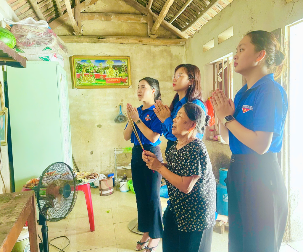 Nhân dịp kỷ niệm 77 năm Ngày thương binh Liệt sỹ 27/7, Đoàn xã Đoan Bái và Chi đoàn Cơ quan Đảng Đoàn thể huyện tổ chức đến thăm hỏi bà Trần Thị Phái (Sinh năm 1944), là vợ liệt sỹ Hà Văn Minh, thôn Đông, xã Đoan Bái. Bà Phái sống một mình trong căn nhà nhỏ nhiều năm nay. Thực hiện một ngày “Cùng ăn, cùng ở, cùng làm”, đoàn viên, thanh niên tổ chức tặng quà, phối hợp khám miễn phí các bệnh về mắt, da liễu, huyết áp cho bà Phái. Bên cạnh đó dọn dẹp nhà, vệ sinh cảnh quan xung quanh nhà, nấu bữa cơm gia đình, cùng trò chuyện, lắng nghe và chia sẻ những khó khăn trong cuộc sống, động viên bà vơi bớt những đau thương, mất mát, sống vui, sống khỏe.