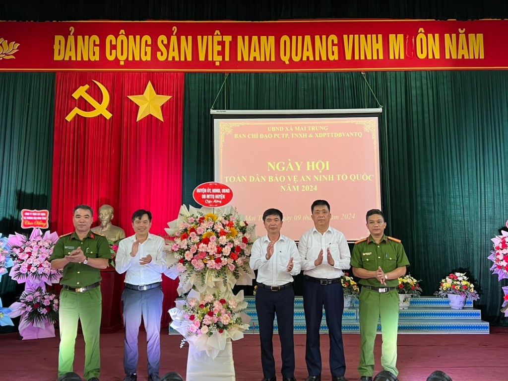 Sáng 9/8, Ban chỉ đạo (BCĐ) phòng chống tội phạm, tệ nạn xã hội và xây dựng phong trào Toàn dân bảo vệ an ninh Tổ quốc xã Mai Trung tổ chức Ngày hội Toàn dân bảo vệ an ninh Tổ quốc năm 2024. Đến dự có Đồng chí Phạm Văn Hà, Huyện ủy viên- Trưởng Phòng giáo dục và đào tạo; Thượng tá Nguyễn Công Điệp, Phó Trưởng Công an huyện; lãnh đạo Đảng ủy, HĐND, UBND, MTTQ và các tổ chức thành viên, các cơ quan, đơn vị, trường học, các thôn cùng nhân dân trong toàn xã.
