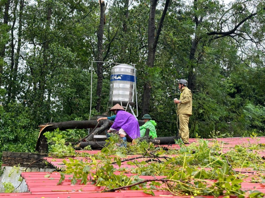 Với tinh thần khẩn trương, trách nhiệm cao, các lực lượng chức năng trên địa bàn huyện đã “dũng cảm vượt bão” nhanh chóng có mặt hỗ trợ nhân dân mọi mặt, chặt, tỉa, dọn dẹp cây đổ gãy trên đường giúp các phương tiện lưu thông. Trong đó lực lượng công an cơ sở phát huy mạnh vai trò “công an nhân dân vì nước quên thân, vì dân phục vụ”.