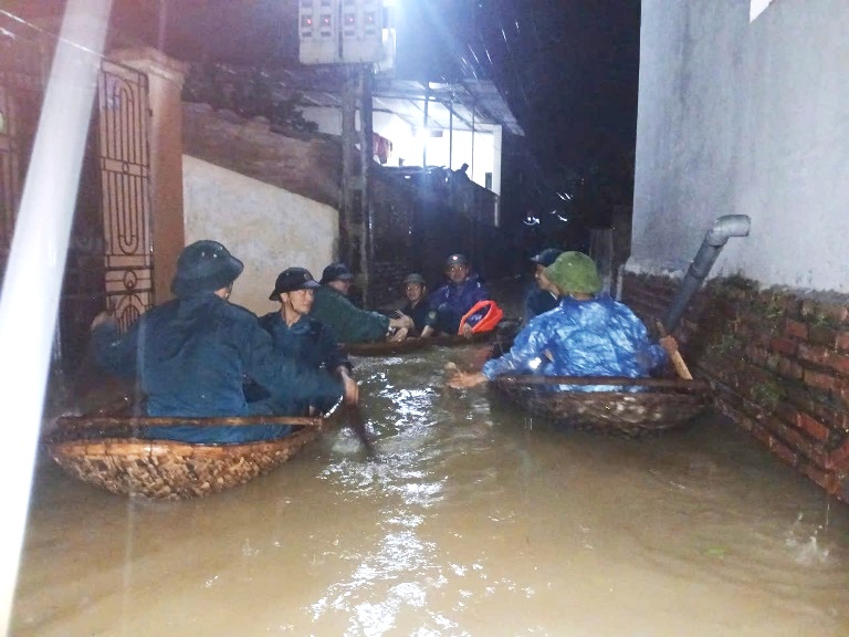 Dân quân xã Mai trung giúp dân di dời người và tài sản trong đêm