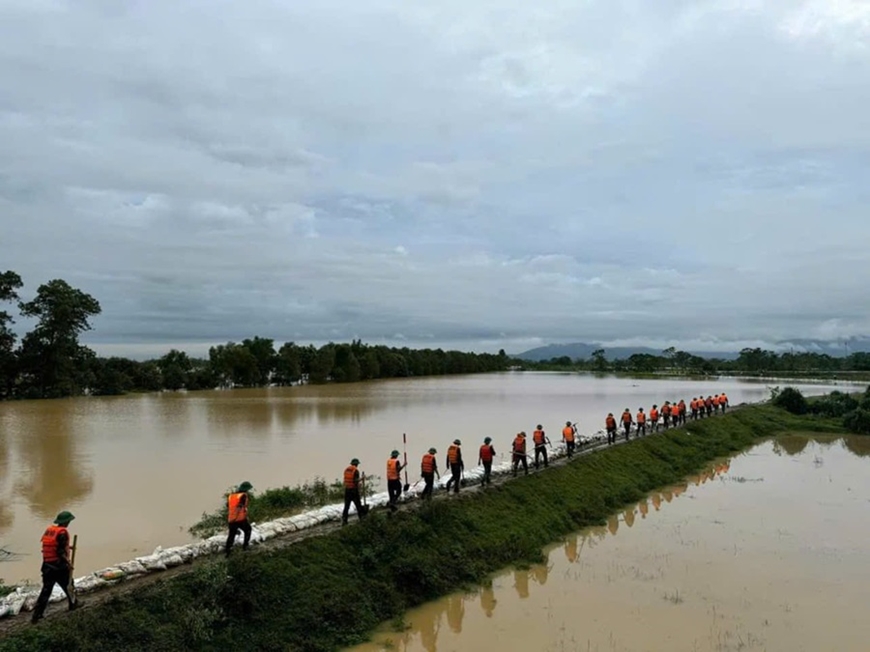 Đêm ngày 10/9, do ảnh hưởng của bão số 3 khiến nước lũ tràn qua đê bối ở thôn Đa Hội, xã Hợp Thịnh, huyện Hiệp Hòa, tỉnh Bắc Giang. Trước tình hình trên, Công an huyện Hiệp Hòa đã huy động lực lượng, phương tiện gia cố đê, sơ tán gần 1.000 hộ dân ở các xã ven sông Cầu đến nơi an toàn. Trong đó, có những cán bộ chiến sỹ dù nhà bị ngập trong lũ lụt, toàn bộ tài sản gia đình trôi theo dòng lũ, người thân phải đi ở nhờ nhưng vẫn nỗ lực hết mình chung tay hỗ trợ tiếp tế, giúp nhân dân tránh lũ an toàn.