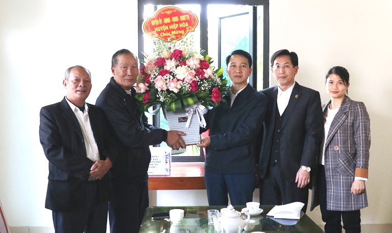 Chủ tịch HĐND huyện tặng hoa và quà chúc mừng Ban hành giáo Hoàng Liên, Hoàng An