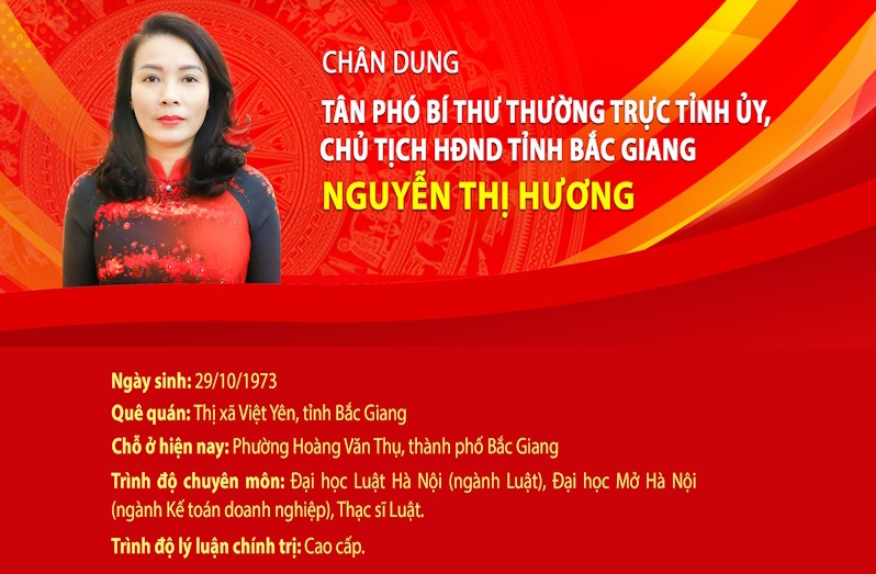 Chân dung tân Phó Bí thư Thường trực Tỉnh ủy, Chủ tịch HĐND tỉnh Bắc Giang Nguyễn Thị Hương BBT