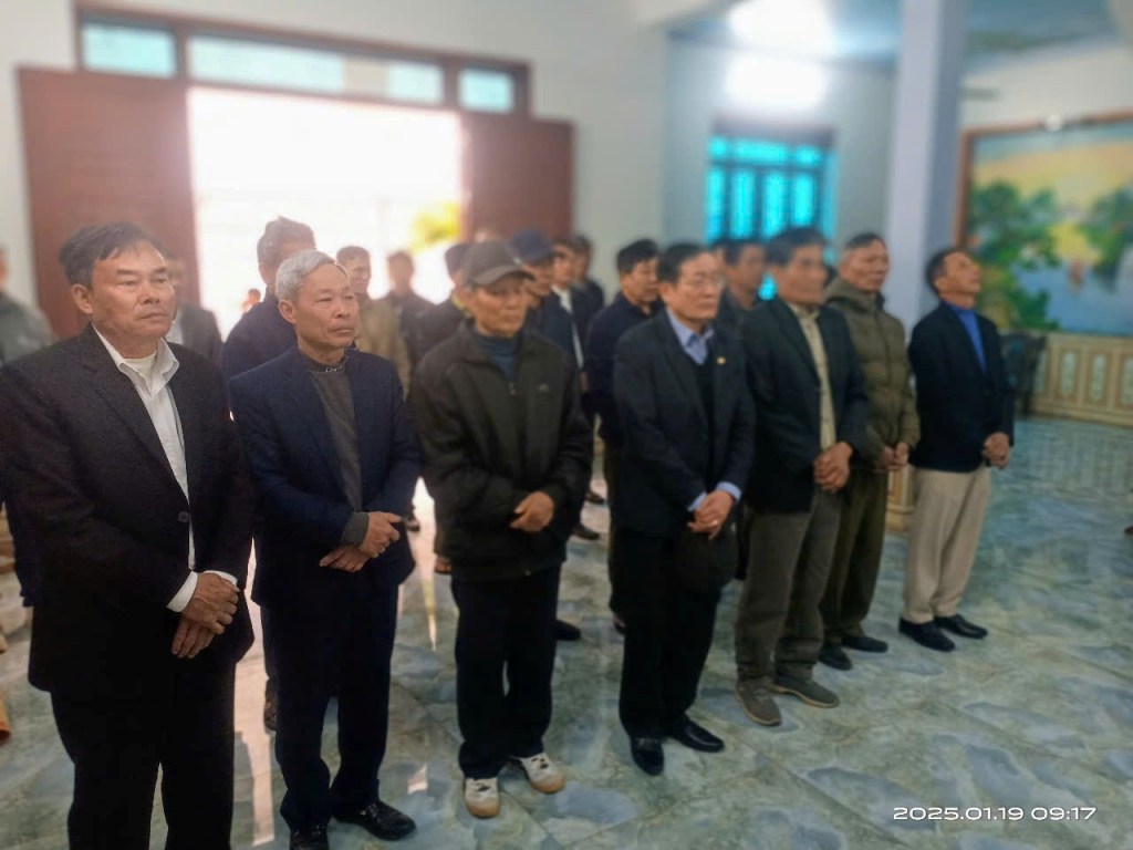 Trên ngôi nhà thờ, các cụ cao niên sửa soạn bàn thờ gia tiên. Mọi việc xong xuôi, đại diện những gia đình trong dòng họ thắp nén nhang tâm kính cẩn tạ ơn ông bà, tổ tiên, rồi mời các cụ về thụ hưởng lễ vật của con cháu.