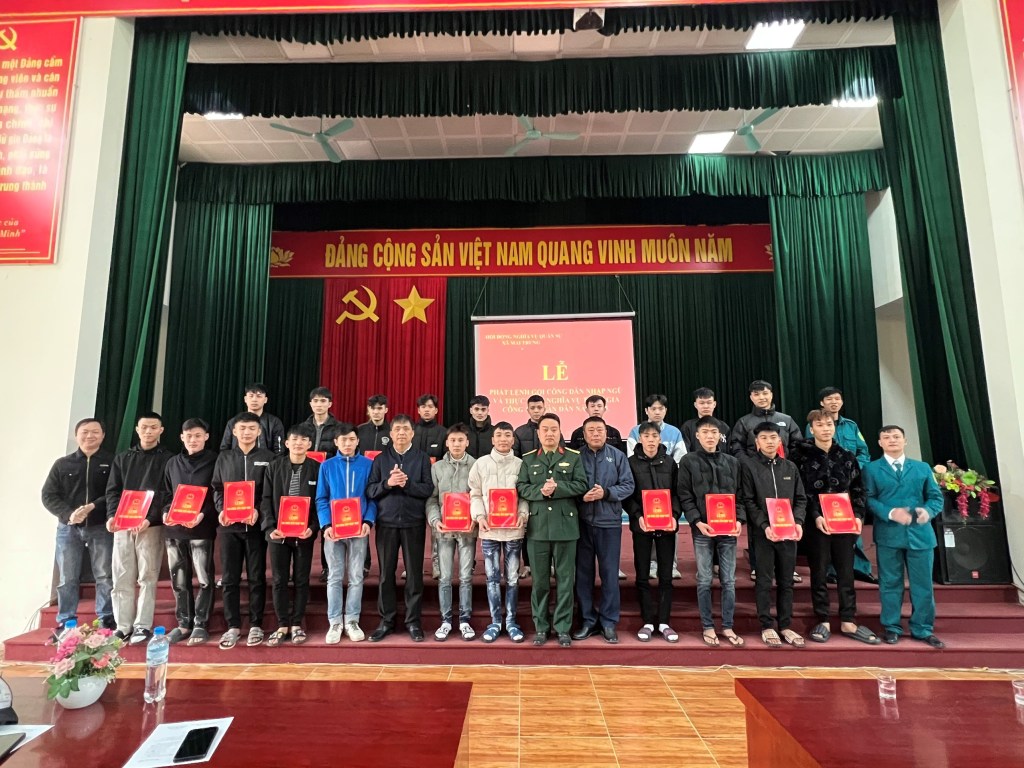 Tại buổi trao lệnh gọi, đồng chí Ngô Văn Phương, Phó Bí thư Đảng ủy, Chủ tịch UBND xã, Chủ tịch Hội đồng nghĩa vụ quân sự xã đã trực tiếp giao lệnh gọi công dân nhập ngũ cho các thanh niên lên đường thực hiện nghĩa vụ. Đồng chí cũng gửi lời chúc mừng đến 23 thanh niên ưu tú trúng tuyển nghĩa vụ quân sự năm 2025, đồng chí tin tưởng rằng tuổi trẻ xã Mai Trung luôn phát huy truyền thống của địa phương, với khí thế và nhiệt huyết của tuổi trẻ, nghiêm túc chấp hành lệnh gọi thanh niên nhập ngũ và thật tự tin bước vào một giai đoạn rèn luyện và trưởng thành mới, hoàn thành nghĩa vụ của người thanh niên đối với Tổ quốc. Nhân dịp này Đảng ủy, UBND xã trích kinh phí trao cho mỗi thanh niên có lệnh gọi nhập ngũ 01 phần quà gồm 10kg gạo nếp và 10 kg thịt lợn, chúc các thanh niên và gia đình đón năm mới an khang, thịnh vượng. Vững tin sẵn sàng lên đường nhập ngũ../.