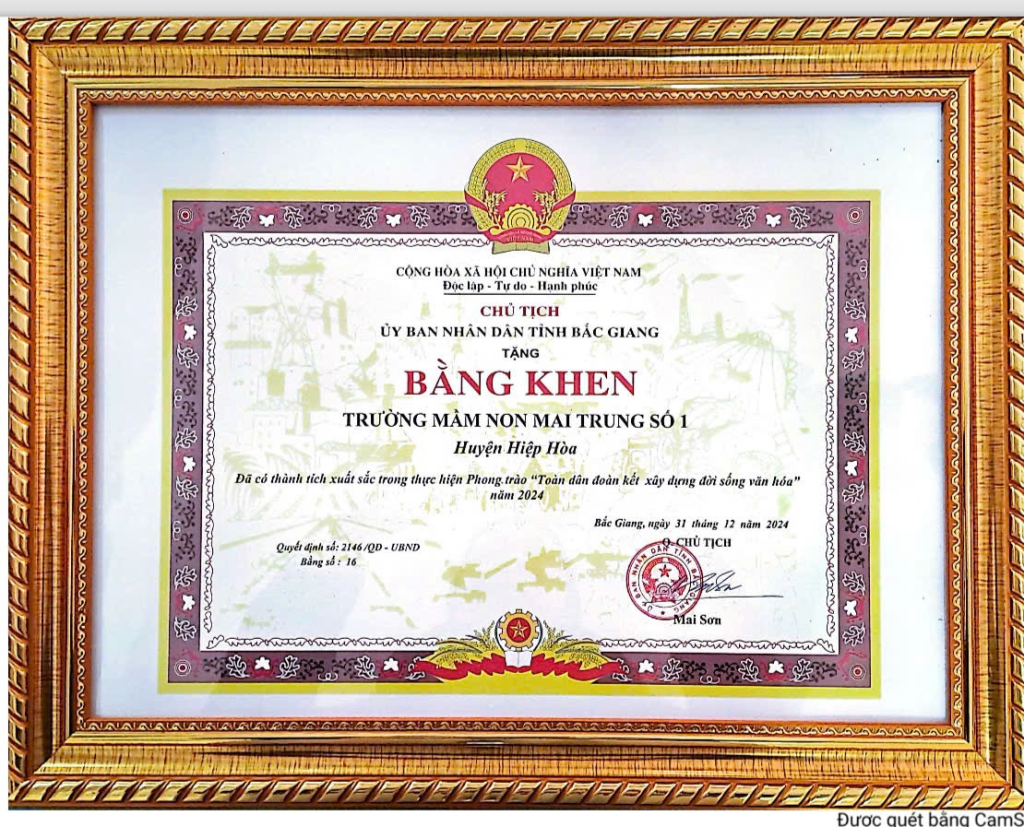 Ngày 17/01/2025, nhà trường vinh dự được Chủ tịch UBND tỉnh Bắc Giang tặng Bằng khen vì đã có thành tích xuất sắc trong thực hiện phong trào “Toàn dân đoàn kết xây dựng đời sống văn hóa” năm 2024.
