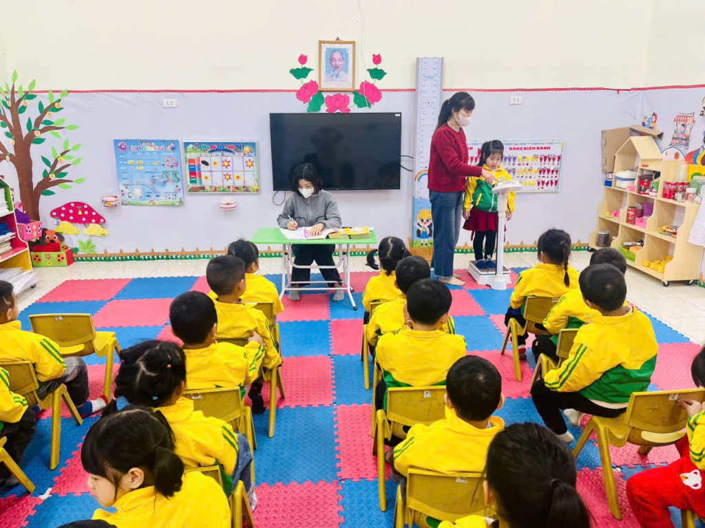 Từ nhiều năm nay, việc tổ chức cân, đo theo dõi biểu đồ phát triển cho trẻ tại Trường mầm non Mai Trung số 2, huyện Hiệp Hòa đã được nhà trường thực hiện thường xuyên theo kế hoạch 4 lần/1 năm học. Mỗi quý giáo viên phụ trách các nhóm lớp đã tổ chức thực hiện cân, đo theo dõi biểu đồ đối với tất cả học sinh ở các điểm trường (Nội Xuân, Mai Phong, Cẩm Trang: cân, đo lần 1: Tháng 9/2024; Lần 2: Tháng 11/2024; Lần 3: Tháng 02/2025; Lần 4: Tháng 5/2025).