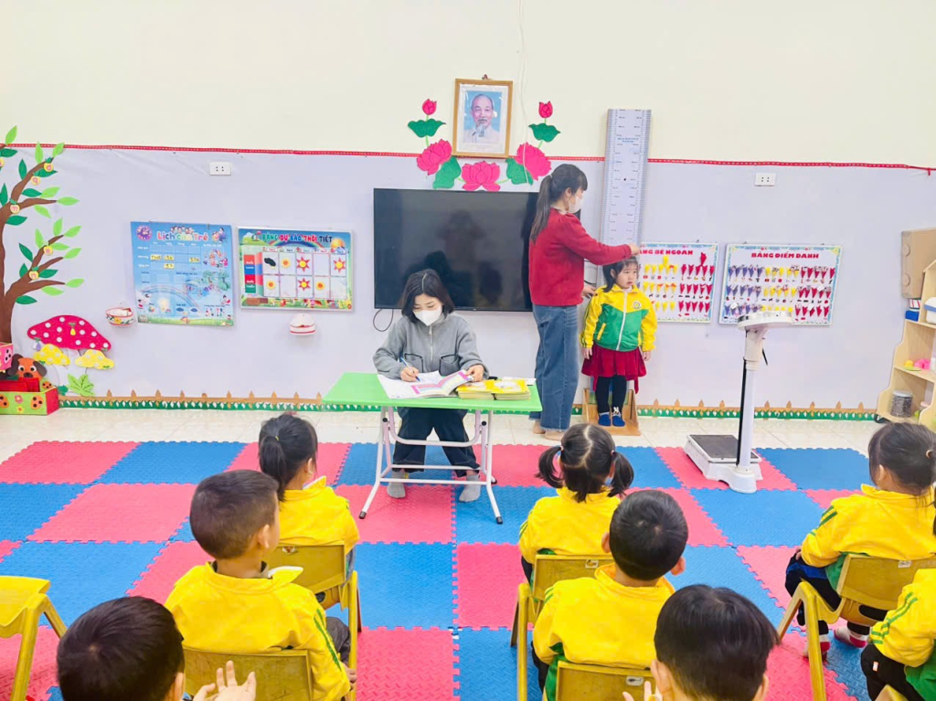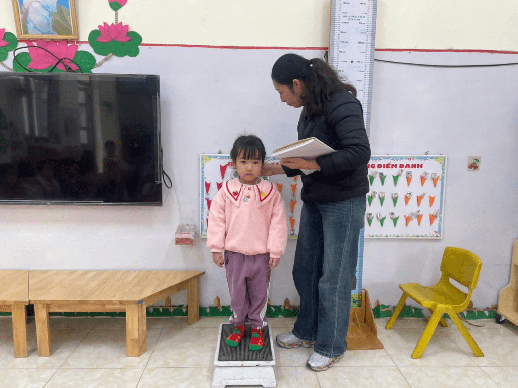 Dưới đây là một số hình ảnh cân, đo trẻ ở các nhóm, lớp