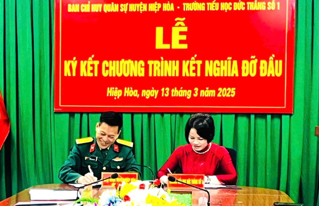 Ngày 13/3, Ban Chỉ huy Quân sự huyện Hiệp Hòa phối hợp với Trường Tiểu học Đức Thắng số 1 tổ chức lễ ký kết nghĩa, đỡ đầu giữa 2 đơn vị. Đây là hoạt động có ý nghĩa thiết thực, nhằm xây dựng tình đoàn kết gắn bó quân dân giữa Ban Chỉ huy Quân sự huyện với giáo viên, học sinh nhà trường, kịp thời hỗ trợ, giúp đỡ nhau trong các nhiệm vụ, tuyên truyền, giáo dục về truyền thống dân tộc, quân đội, lực lượng vũ trang của địa phương với nhà trường.