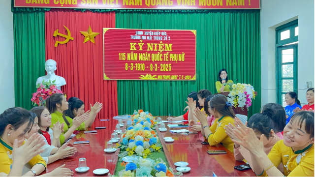Thực hiện Chương trình công tác tháng 3/2025 của công đoàn Trường Mầm non Mai Trung số 2 và kế hoạch Số 01/KH-CĐMT2 ngày 26 tháng 2 năm 2025về việc tổ chức các hoạt động kỷ niệm 115 năm ngày Quốc tế Phụ nữ 8/3 nhằm nâng cao đời sống văn hóa tinh thần cho đoàn viên công đoàn trong nhà trường; Ôn lại và phát huy những truyền thống tốt đẹp của người phụ nữ Việt Nam, chiều ngày 8/3/2025 Công đoàn trường Mầm non Mai Trung số 2 đã tổ chức mít tinh chào mừng 115 năm Ngày quốc tế phụ nữ (08/3/1910 – 08/3/2025) và 50 năm ngày giải phóng Miền nam thống nhất đất nước.