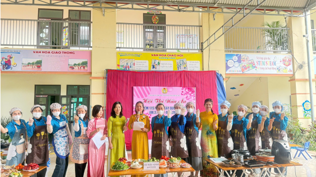 Nhằm đẩy mạnh phòng trào thi đua “Giỏi việc trường- Đảm việc nhà” trong nữ CBGV, NV nhà trường, Công đoàn cùng với nhà trường đã tổ chức hội thi nấu ăn với chủ đề “Bữa cơm gia đình” với sự tham gia của 3 đội dự thi đại diện cho 3 tổ chuyên môn của nhà trường.