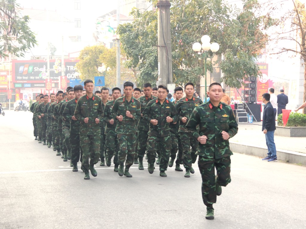Các vận động viên tham gia Ngày chạy và hô vang khẩu hiệu ” “Rèn luyện thân thể – Bảo vệ Tổ quốc”