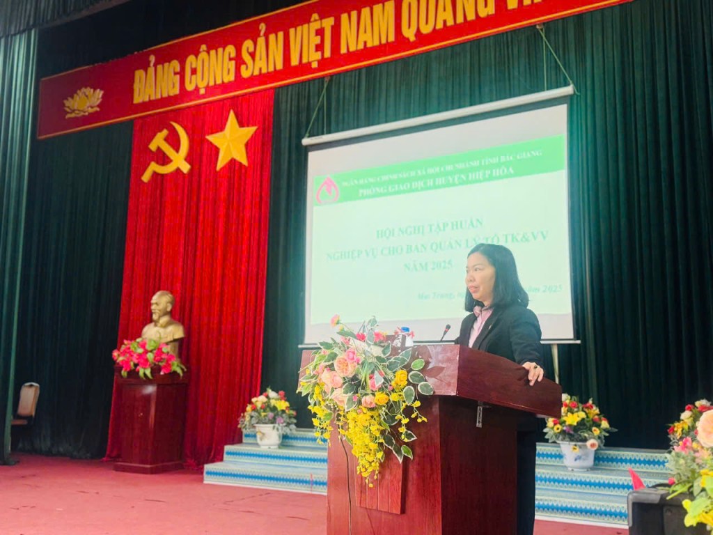 Hội nghị do đồng chí Ngô Thị Thắm – Giám đốc Phòng giao dịch NHCSXH huyện trực tiếp hướng dẫn và truyền đạt nội dung. Tại buổi tập huấn, các đại biểu đã được tiếp cận, trao đổi về những nội dung quan trọng nhằm nâng cao hiệu quả quản lý và hoạt động của các Tổ TK&VV, bao gồm: