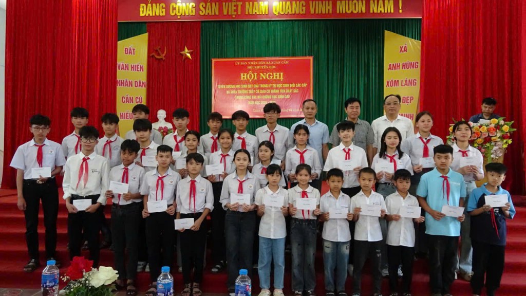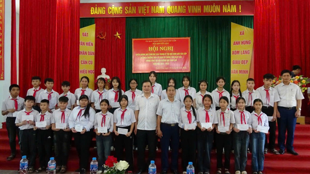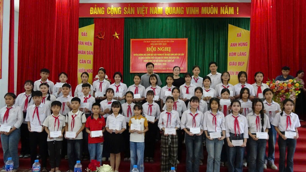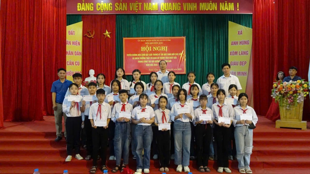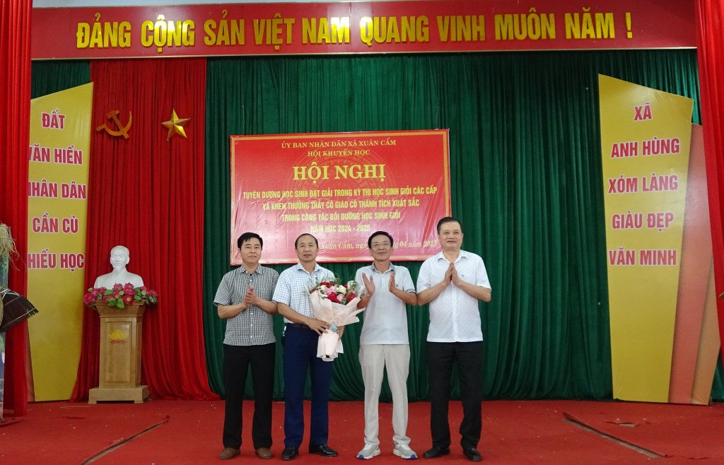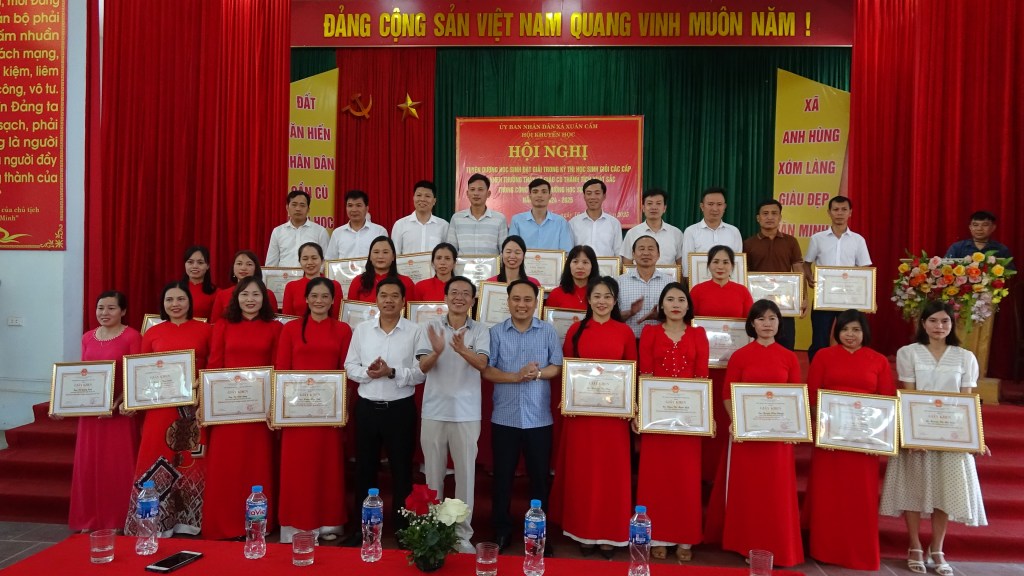 Chiều 16/4/2025 UBND xã Xuân Cẩm trang trọng tổ chức “Hội nghị tuyên dương học sinh đạt giải, trong kỳ thi học sinh giỏi các cấp và khen thưởng các thầy cô giáo có thành tích xuất sắc trong công tác bồi dưỡng học sinh giỏi(HSG) năm học 2024- 2025.