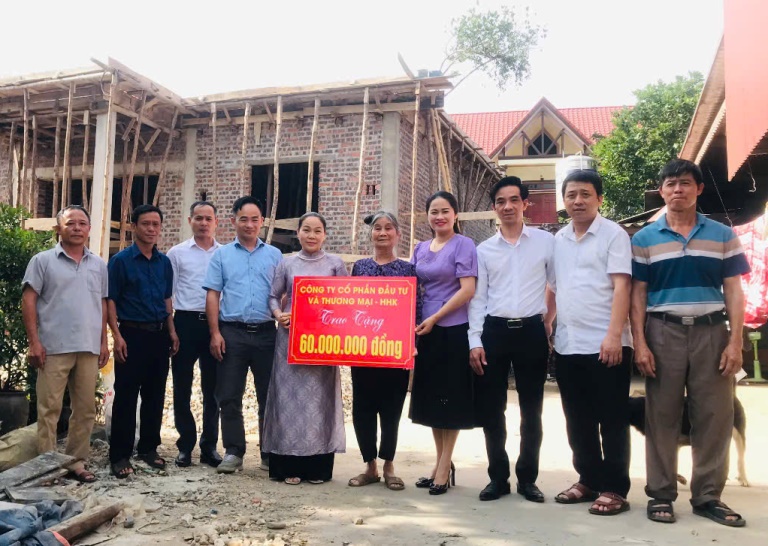 Công ty cổ phần đầu tư và Thương mại HHK thôn Hương Thịnh, xã Sơn Thịnh vừa về trao số tiền hỗ trợ 60 triệu đồng cho Mẹ VNAH Đinh Thị Sùng, thôn Quế Sơn, xã Hùng Thái. Đại diện trực tiếp trao tiền hỗ trợ có bà Ngô Thị Kim- Chủ tịch HĐQT công ty cổ phần Đầu tư và Thương mại – HHK cùng đại diện Phòng nội vụ huyện và lãnh đạo địa phương.